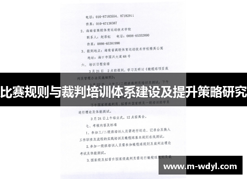 比赛规则与裁判培训体系建设及提升策略研究是提升赛事公正性、专业性和规范性的重要课题。随着竞技体育的发展,比赛的复杂性和多样性日益增加,裁判员的判罚水平和规则的合理性直接影响着比赛的公正性和观众的体验。因此,构建完善的比赛规则与裁判培训体系,并通过有效的提升策略来加强裁判员的执法能力,是确保体育比赛高效、公正、顺利进行的关键。本文将从四个方面展开对比赛规则与裁判培训体系建设及提升策略的研究,分别为:比赛规则的完善与创新、裁判员选拔与培训体系的建设、裁判员职业素养的提升策略、技术手段与人工智能对裁判工作的辅助作用。通过深入探讨这些方面,可以为提升裁判员整体水平、优化比赛规则、确保比赛公平性和有效性提供可行的策略和方向。